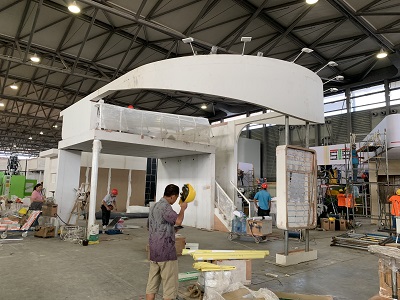 一年兩屆的上海面料輔料展會秋季場又開始了,今年是展會搭建的第一天,昨天下午開始進館堆料。因為這個面料......